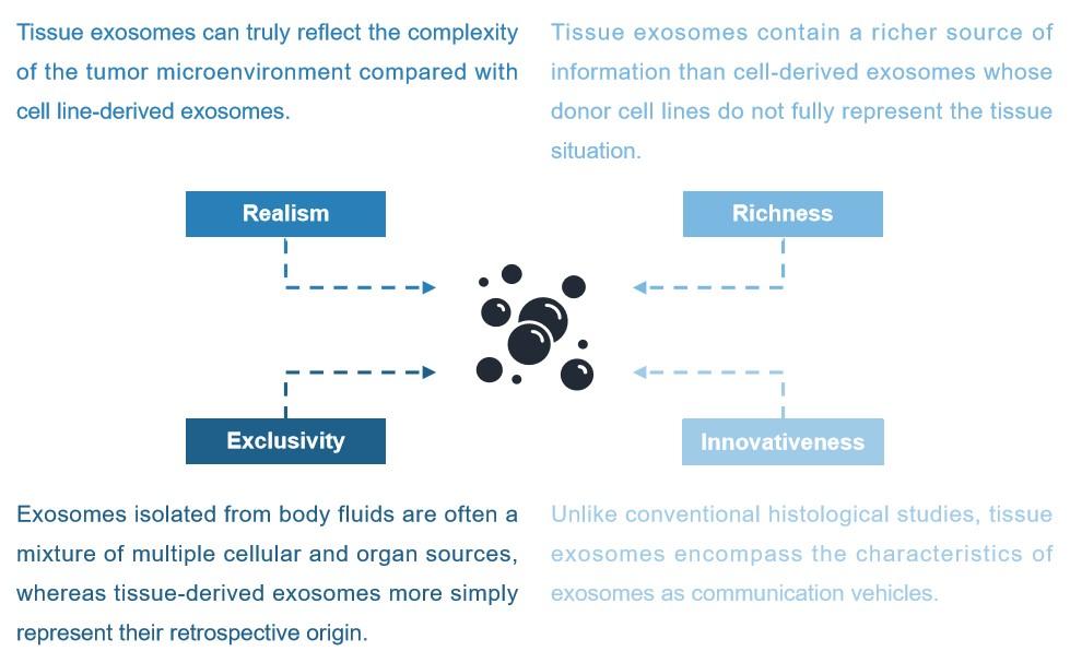 Tissue exosomes, an emerging hotspot in the field of exosome research, have the following characteristics compared to other sources of exosomes.