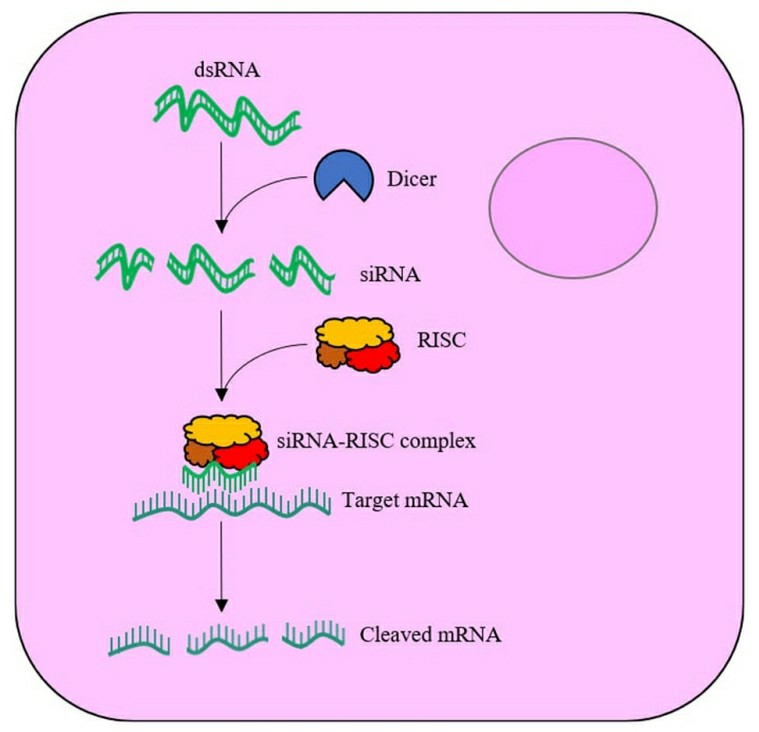 Fig.1 Schematic of the RNA interference (RNAi) mechanism within a cell1,7.