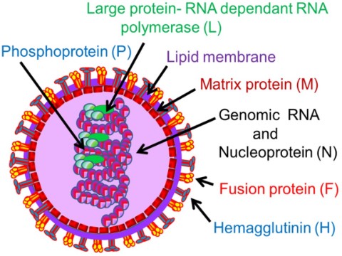 Measles virus (MeV) belongs to the Morbillivirus genus, Paramyxoviridae family, characterized as a negative-sense single-stranded RNA virus. It possesses two envelope glycoproteins: hemagglutinin (H) and fusion (F) proteins, which play crucial roles in the virus's lifecycle, particularly during viral entry to host cells. The H protein mediates the viral attachment to host cells by interacting with cellular receptors containing sialic acid. Two known receptors for the H protein are CD46 and SLAM. The H protein also triggers host immune responses. This glycoprotein undergoes N-linked glycosylation, typically featuring five potential N-linked glycosylation sites, specifically Asn 168, 187, 200, 215, and 238. The F protein is categorized as a class I fusion protein and is responsible for initiating membrane fusion. The oligomerization of the H and F proteins is a key initiating step in this cellular entry process. N-linked glycosylation plays a crucial role in maintaining the proper conformation and stability of glycoproteins and influences the binding affinity to cell receptors and the interaction with cell membranes, thereby impacting viral attachment to host cells.