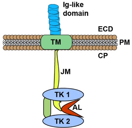 Fig.1 Schematic of monomeric FLT3 structure.1,3