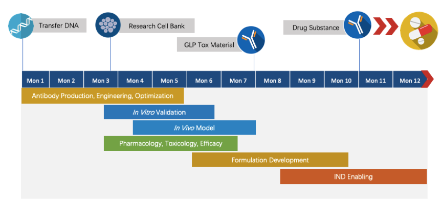 We have extensive knowledge of end-to-end program development. For each program, we are committed to delivering the final complete program to our clients within 1.5 years before entering the IND stage.