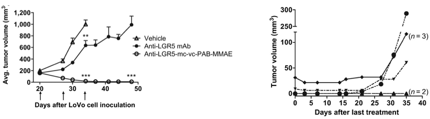 Gong, Xing, et al. "LGR5-targeted antibody–drug conjugate eradicates gastrointestinal tumors and prevents recurrence." Molecular cancer therapeutics 15.7 (2016): 1580-1590.