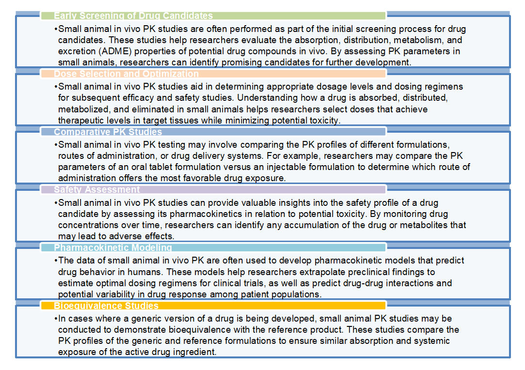 Small Animal In Vivo PK typically refers to conducting pharmacokinetic (PK) studies in small animal models. These studies involve investigating how drugs are absorbed, distributed, metabolized, and excreted within the bodies of small animals, such as mice, rats, or rabbits. Small animal in vivo PK offers researchers a valuable resource for conducting preclinical pharmacokinetic studies to assess the behavior of drug candidates in small animal models, which can inform drug development decisions and optimize dosing strategies for subsequent efficacy and safety evaluations.