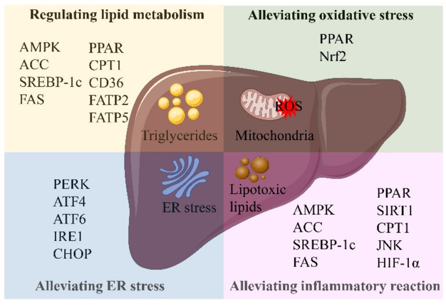 | Regulating lipid metabolism | Deoxyschizandrin | Tomatidine | In NAFLD research, Creative Biolabs' lipid-based platforms provide a unique advantage. These delivery systems can encapsulate and deliver drugs directly to hepatocytes, improving drug bioavailability and targeting. |