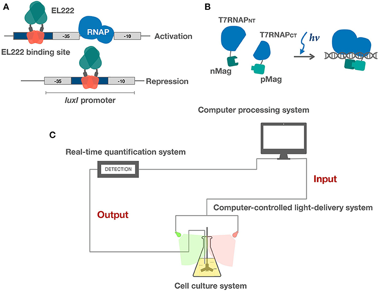- Liu, Zedao, et al. "Programming bacteria with light—sensors and applications in synthetic biology." Frontiers in microbiology 9 (2018): 2692. Distributed under Open Access license CC By 4.0, without modification.
