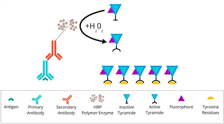 Fig.1 Overview of tyramide signal amplification technique. (Kuczkiewicz, 2022)