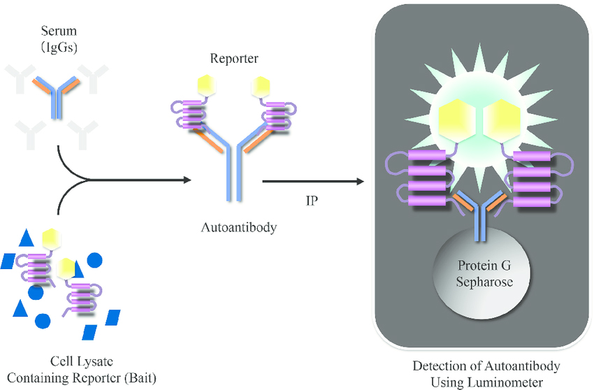 Fig.2 Schematic illustration of LIPS in the detection of autoantibody. (Nakane, 2015)