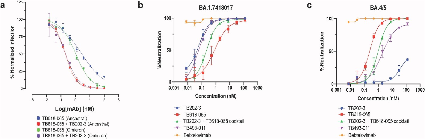Fig. 1 TB493-011 exhibits adequate neutralization against rVSV-SARS-CoV-2 (Omicron BA.1.7418017)
